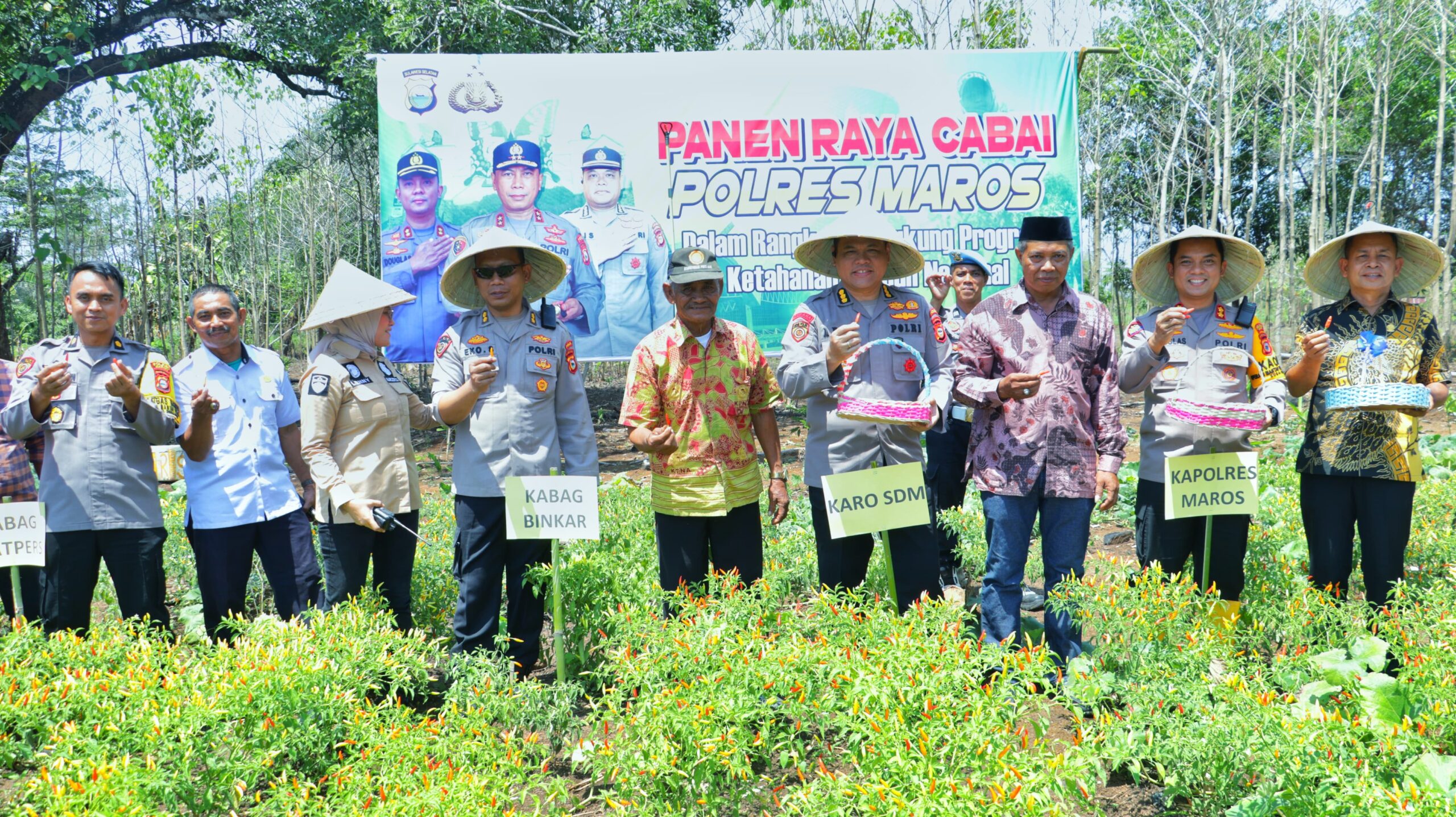 Target Swasembada Pangan Nasional, Biro SDM Polda Sulsel Panen Cabai Di Lahan Binaan Polsek Moncongloe, Maros